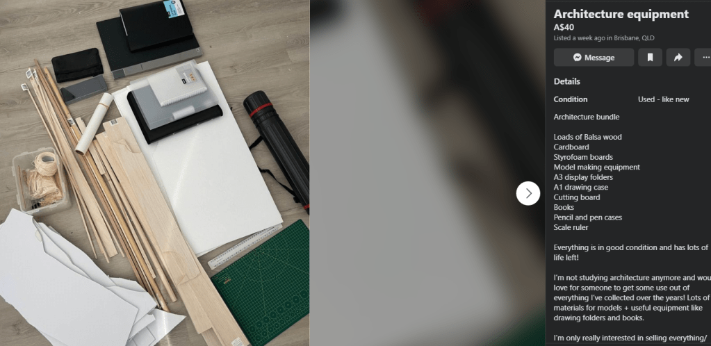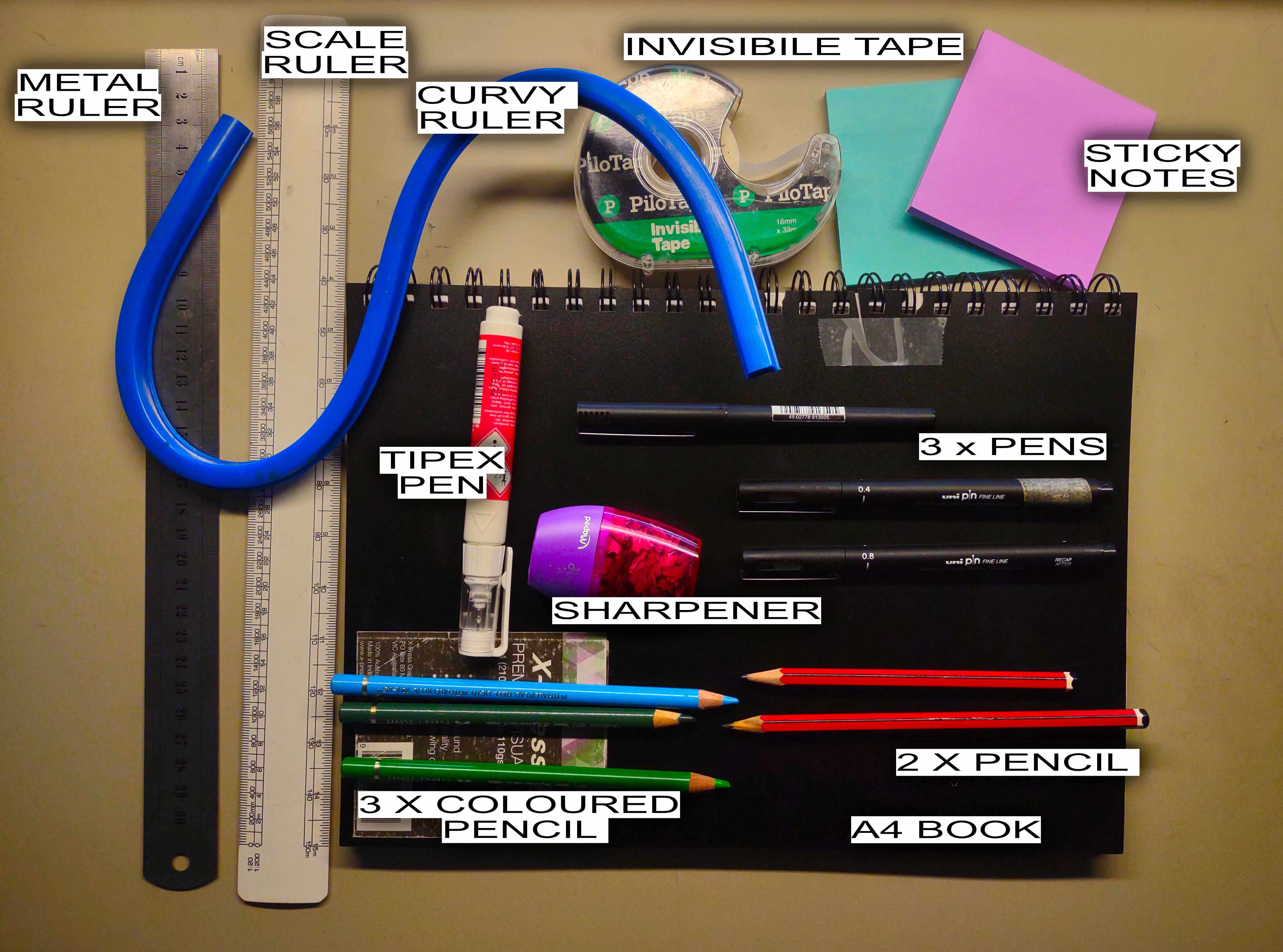 A lot of this stuff you can pick up in any decent stationery shop, but you can save significant $ by looking on Facebook Marketplace. There are plenty of design students that don’t make it and are left with a myriad of barely touched equipment that they want to get rid of.