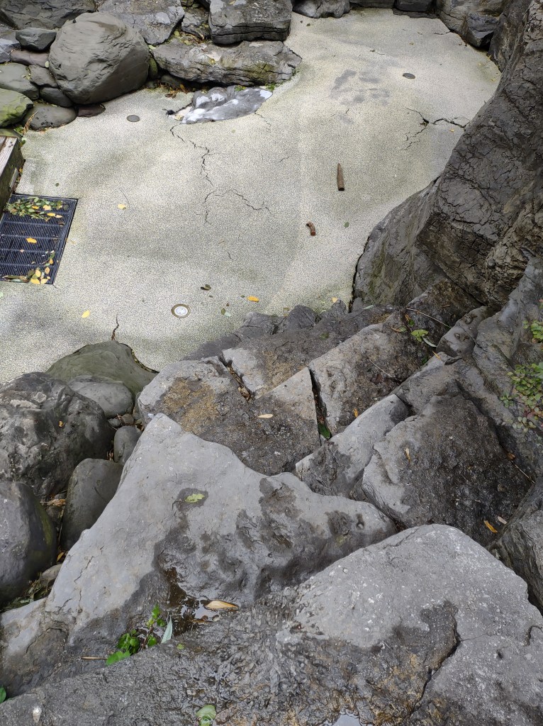 I was quite taken back to come to the top of a stepped cliff in the park leading down to a soft fall matt surrounded with more rocks. So much so that I took pictures *gasp* to document my astonishment. I know that “natural” playscapes are particularly difficult to designate because the potential for injury.